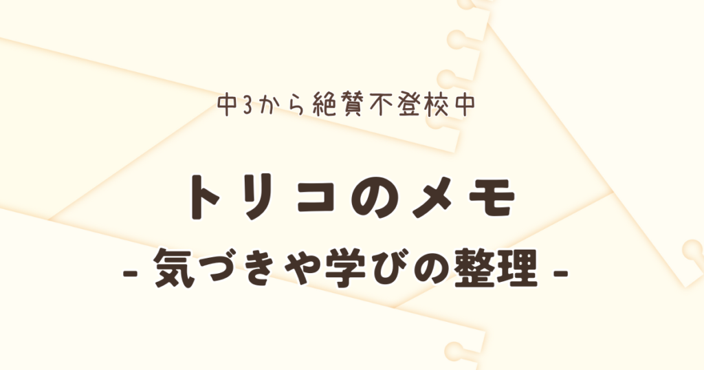 こんにちは、トリコです。 不登校の日々の中で、これまで当たり前だと思っていたものが、 実はとても大切な支えだったのだと気づかされる瞬間があります。 今日は、そんな小さな気づきについて、静かに綴ってみました。 不登校を経験 ... ]]>